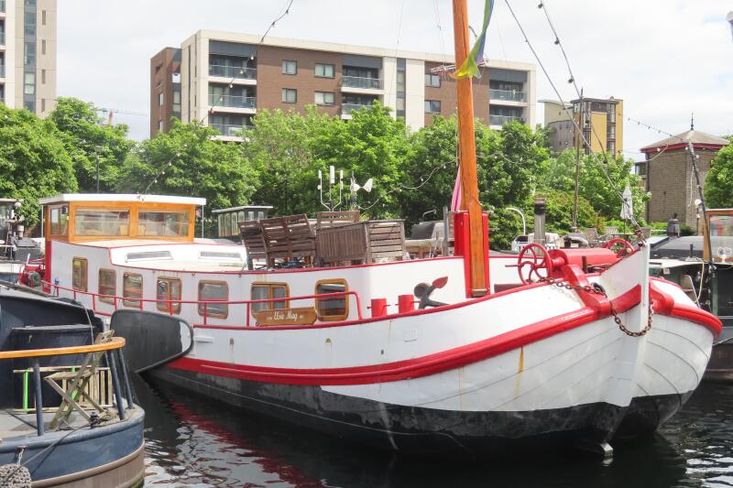 Truly exceptional Dutch Barge, Tjalk, at Poplar Marina, Canary Wharf, with a fully transferable, residential mooring.