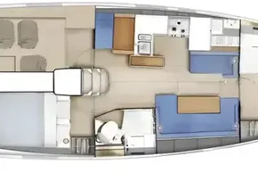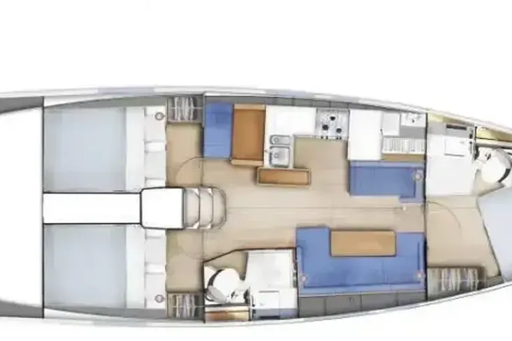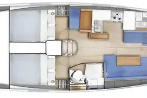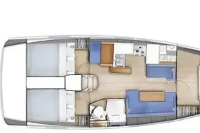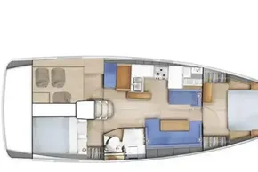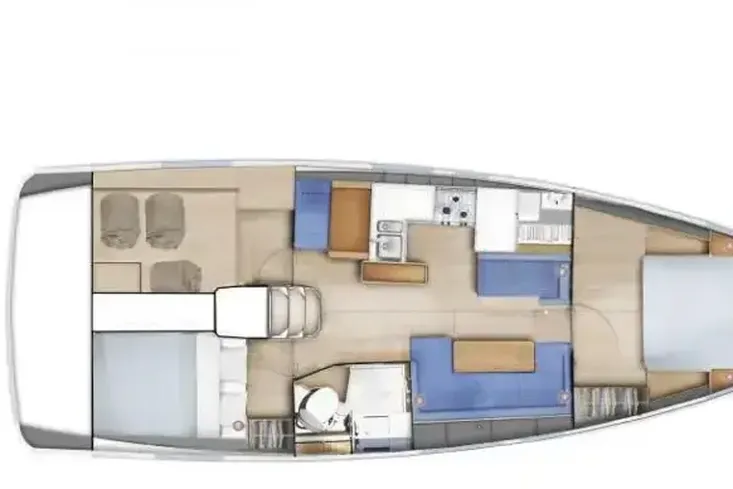 The 410 can be configured in a 2-cabin or 3-cabin arrangement with queen size berths. It is available with either a single aft head or an additional head forward in the master cabin. Both heads offer separated shower compartments. Whether overnighting, entertaining, or day sailing, the Sun Odyssey 410 strikes the perfect balance between performance and comfort.